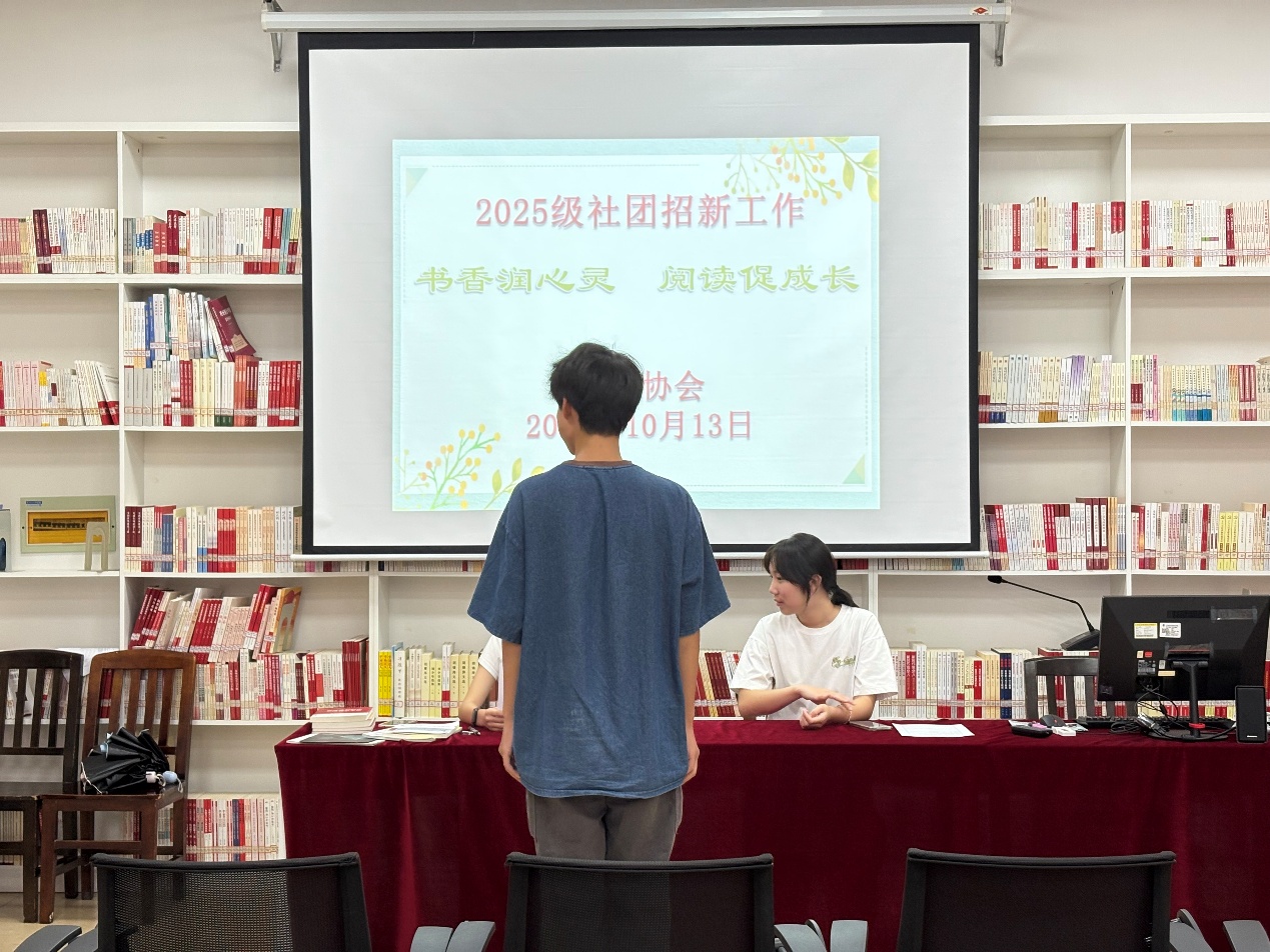 10月13日下午,图书馆2025级读者协会纳新面试会在党建阅览室举行。