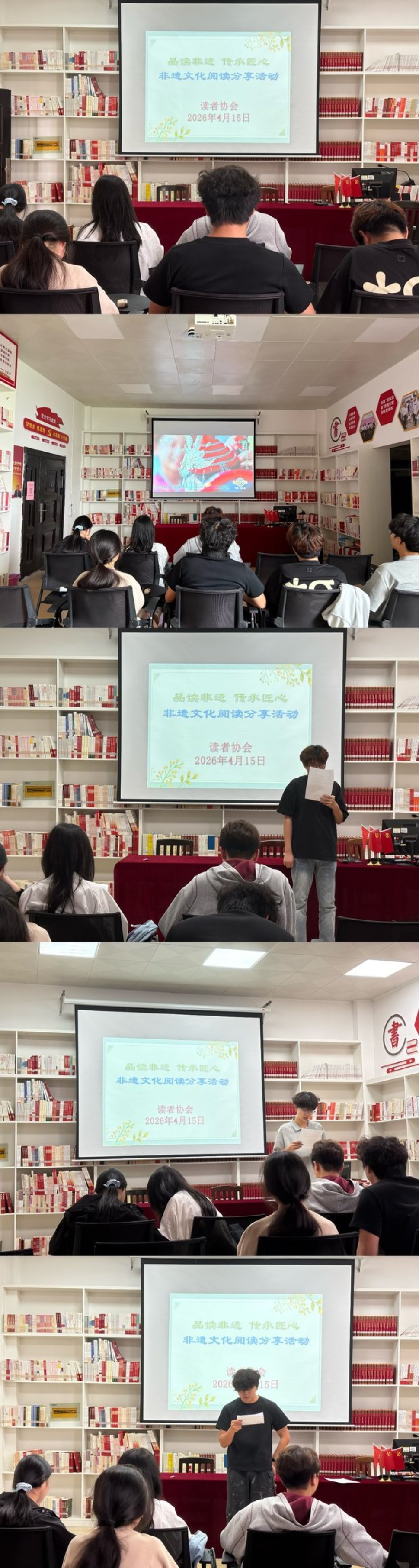 为弘扬中华优秀传统文化,推动非遗文化传承与阅读推广深度融合,4月15日下午,图书馆组织读者协会在党建专题阅览室开展了“品读非遗·传承匠心”主题阅读分享活动。