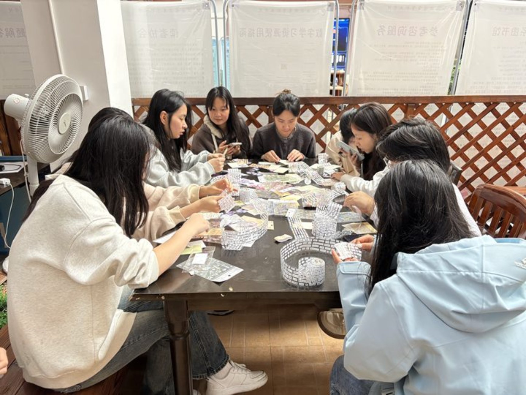 为创新图书馆阅读推广形式,将阅读、美育与创意表达相结合,丰富大学校园文化生活,4月22日下午,图书馆在一楼读者活动区举办了“春日书香·拾字成诗”拼贴诗美育创作活动,吸引了30余名学生读者参与。