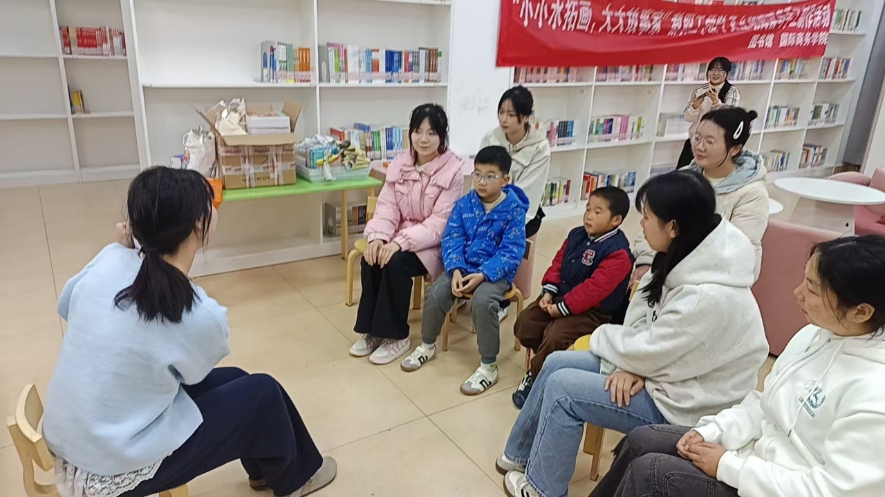 为弘扬雷锋精神,同时落实《全民阅读促进条例》,推进学习型旅商建设,做好教职工学龄子女的阅读指导服务工作,3月21日,在学校单招考试之际,图书馆联合国际商务学院在图书馆三楼学前教育专业阅览室开展了“小小水拓画,大大故事家——非遗浮水绘童趣,童言绘语话美好”教职工学龄子女互动阅读与手工制作志愿服务活动。