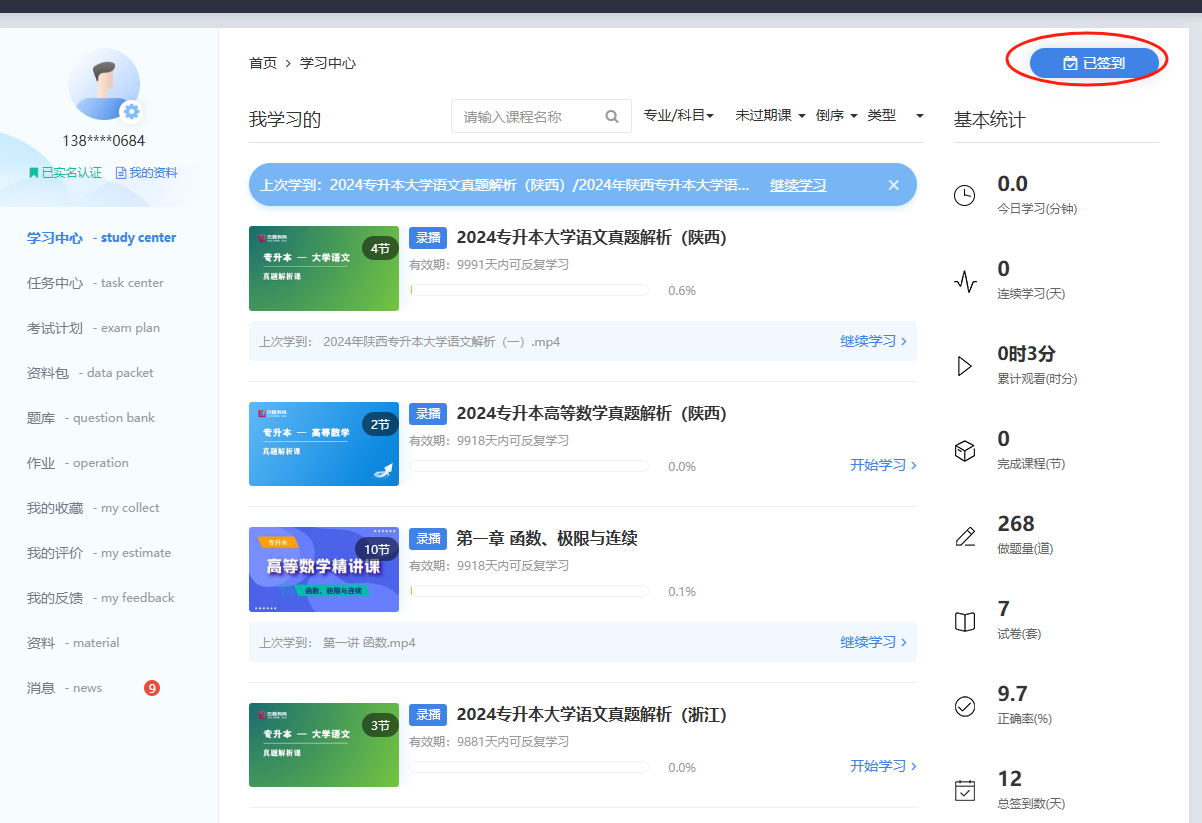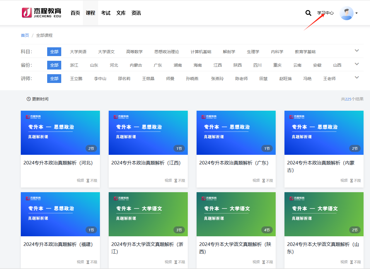 学生进入杰程专升本云课堂平台进行相关内容的学习。