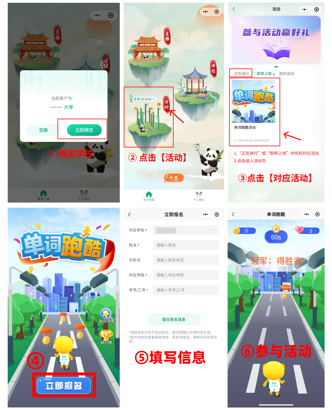 为了打破英语单词传统记忆的枯燥模式,实现沉浸式、游戏化、多感官联动的“跑酷”体验,激发学生学习英语的内驱力,提升学习效果,图书馆联合“新东方智慧教育”开展单词跑酷活动。现将活动内容提示如下: