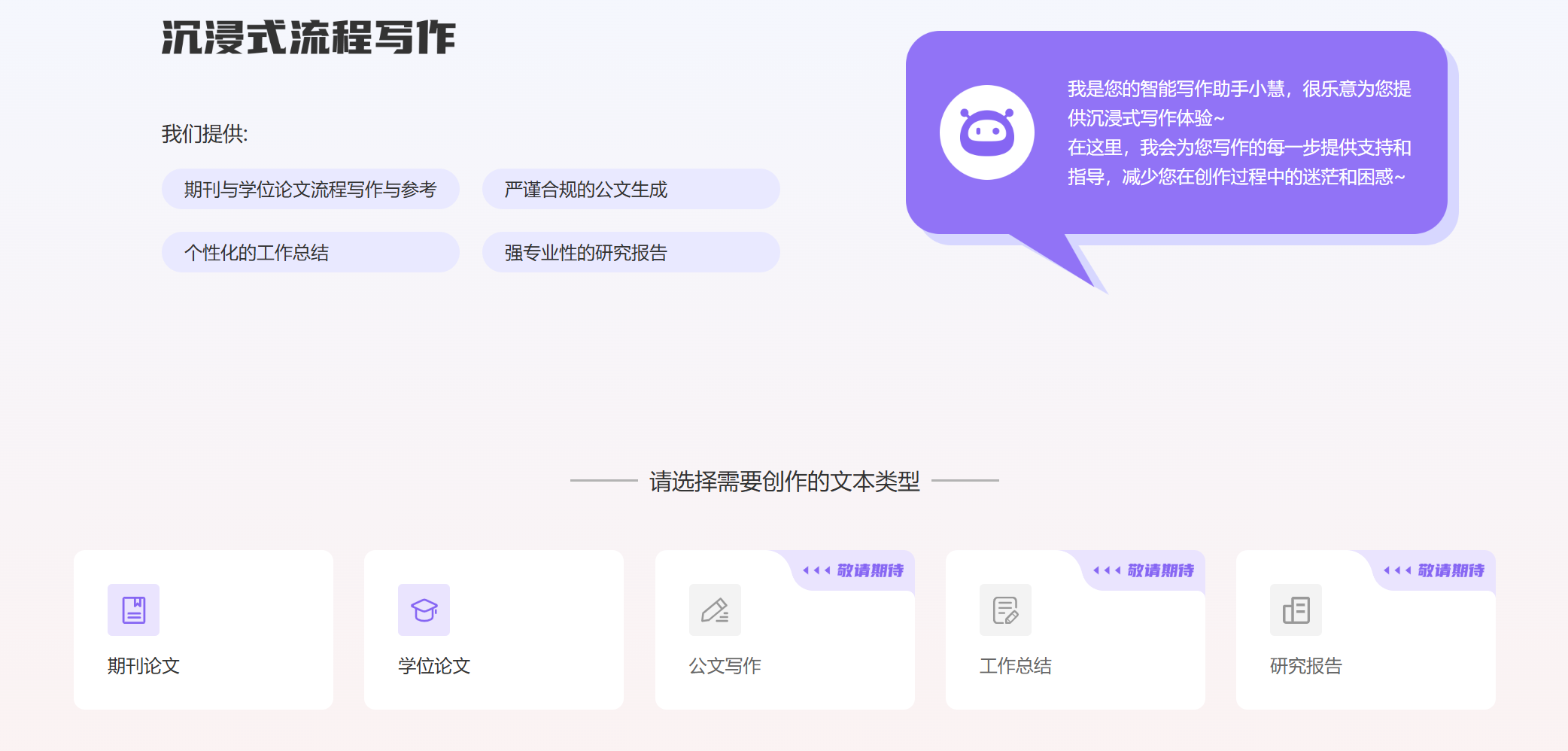 旨在为创作者提供从灵感到成稿的智能化支持,降低创作门槛,提升内容质量和效率。适用于文字创作、商业文案、学术写作等多种场景,致力于成为用户“随需调用”的AI创作伙伴,让复杂创作简单化、个性化需求标准化。