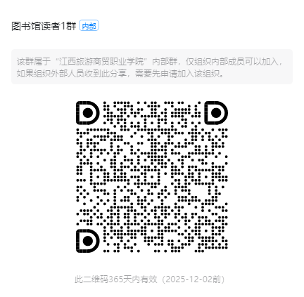 图书馆读者1群:https://qr.dingtalk.com/action/joingroup?code=v1,k1,Dd+6kjdGEE9+oVTLIZt30+x/ASU05hf3udG0ee7kb2w=&_dt_no_comment=1&origin=11