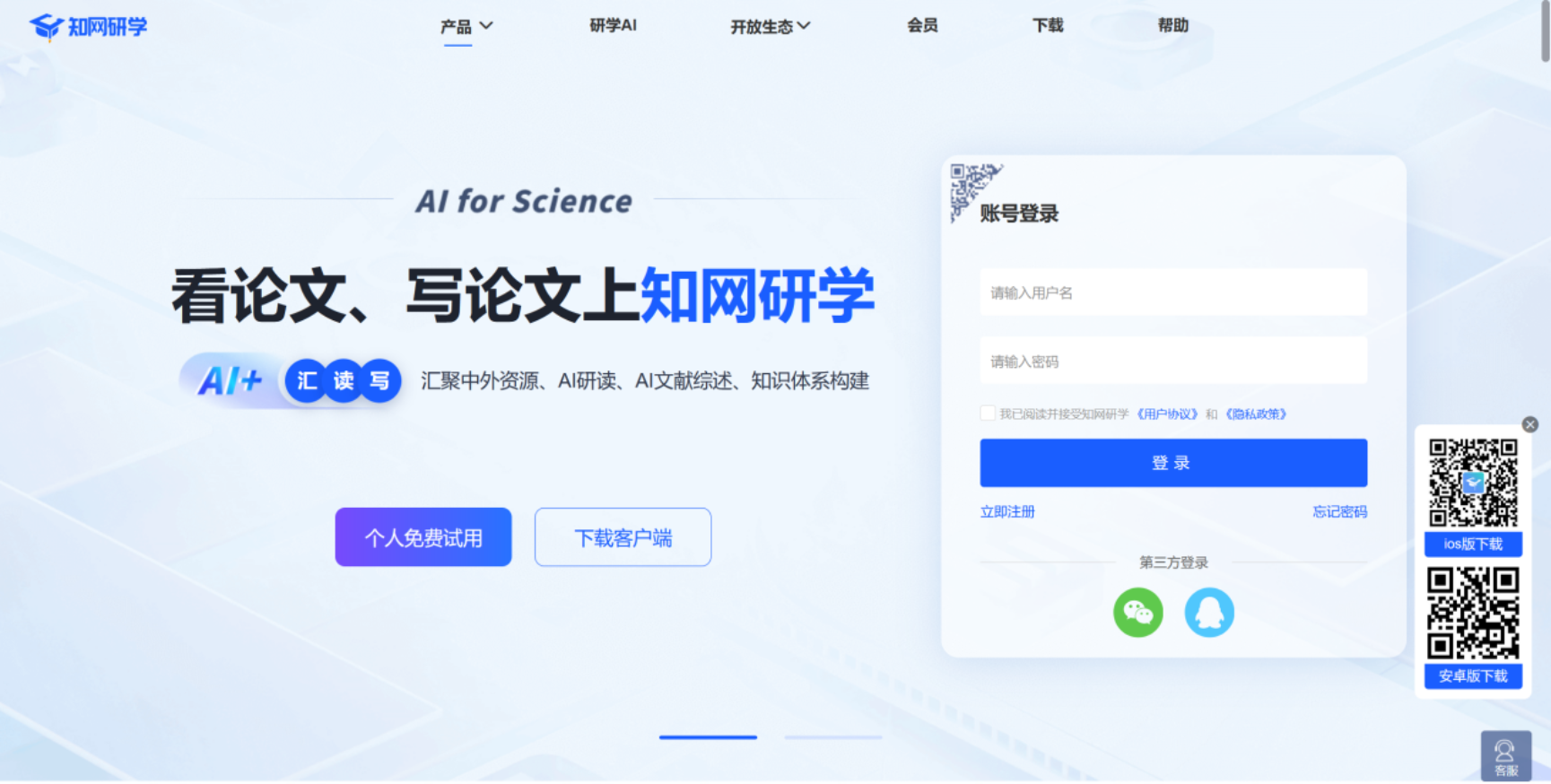 知网研学(x.cnki.net)是一个文献阅读与论文写作平台,集文献检索、文献阅读、文献管理、深度阅读、论文创作、笔记整理、阅读写作训练与指导及AI服务等功能于一体,提供个性化的学习服务,支持Web/桌面/APP多端云同步。主要功能包括:文献、视频课程一站式管理和学习;边阅读边记笔记、参考引证知识网络、全文翻译;文献矩阵、笔记导图、笔记汇编等;写作素材一键引用、自动生成参考文献、学术规范训练。