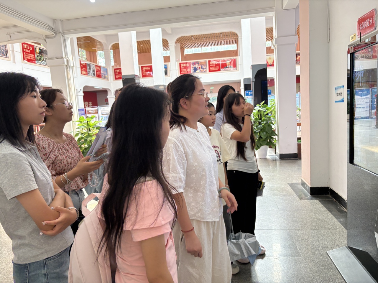 入馆参观学习环节,学科馆员对新生班级学委及新生进行了入馆教育培训,由学科馆员带领同学们进行实地参观学习,重点从图书馆概况、馆舍布局、图书借阅规则、数据资源利用、阅读推广活动、座位预约等方面进行详细讲解。